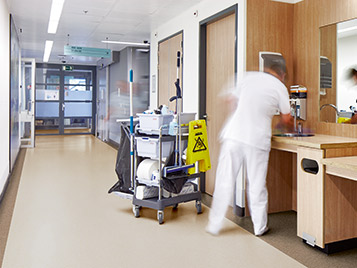 Forbo Sphera homojen vinil zemin kaplaması “PUR” ile güçlendirilmiş yüzeyi sayesinde, kolay bakım sağlayacak, servis süresi boyunca doğacak cilalama ve sprey ile yenileme ihtiyacını ortadan kaldırıyor.